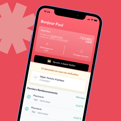 Vous êtes assuré(e) et vous souhaitez vous connecter sur votre espace personnel Vous êtes une entreprise ou un intermédiaire d'assurances et vous souhaitez vous connecter sur votre espace dédié Découvrir nos offres :CourtierVous souhaitez vous développer en assurance collective ? Porteur de risquesVous souhaitez déléguer vos opérations de gestion santé et/ou prévoyance ? EntrepriseVous souhaitez confier la gestion de votre régime santé et/ou prévoyance à un spécialiste ? Nos forcesL'addition des valeurs ajoutées La maîtrise de la relation clientUne expertise de plus de 35 ansDes évolutions technologiques permanentesLa conformité technique et réglementaireNoveoCare en chiffres c'est...répartis sur toute la France Nos dernières actualités :Violences conjugales : l’engagement de NoveoCare pour sensibiliser et accompagnerFaire de l’inclusion une réalité : nos actions pour les personnes en situation de handicapLa carte de tiers payant NoveoCare s’invite dans le Wallet Le dispositif 100% Santé s’élargit : deux nouveaux équipements intégrés |